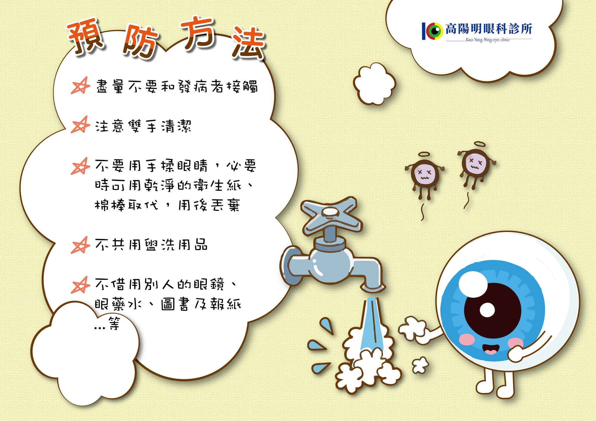 發病期間應立即停止配戴隱形眼鏡、禁止游泳或泡溫泉,並盡量減少出入公共場所。若需外出,請告知周遭人員,做好個人防護。